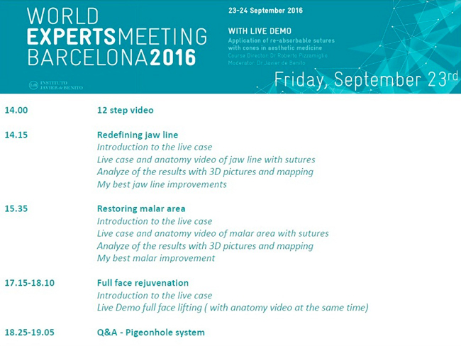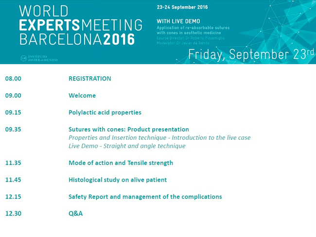 WORLD EXPERTS MEETING BARCELONA 2016 Application of re-absorbable sutures with cones in aesthetic medicine